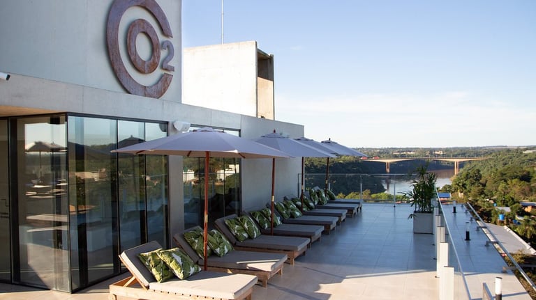 Amérian Portal del Iguazú Hotel es de categoría 5 estrellas y se encuentra ubicado en un punto estratégico, a tan sólo 100 metros del Hito de las tres Fronteras con la mejor vista de la unión de los Ríos Iguazú y Paraná.