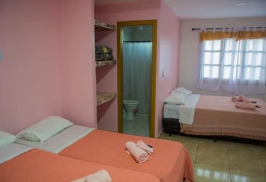 La Habitación Compartida de Caminito Iguazú Tango está diseñada para ofrecer comodidad y conveniencia, con camas individuales, aire acondicionado, Wi-Fi gratuito y televisor de pantalla plana. Incluye un baño compartido con amenidades modernas y una decoración vibrante que refleja el espíritu del tango.