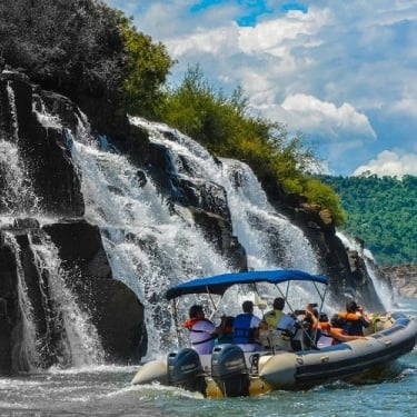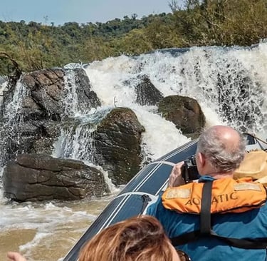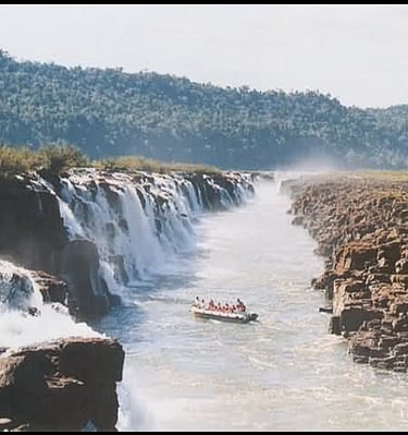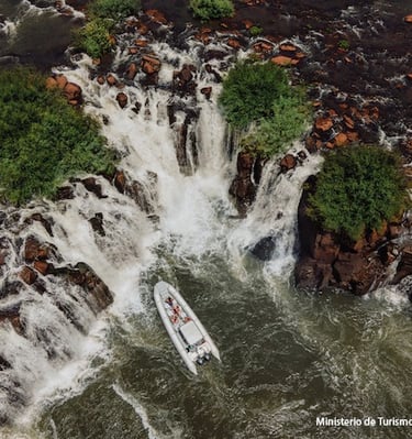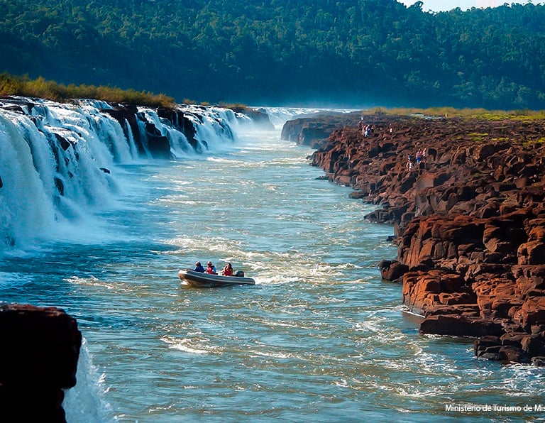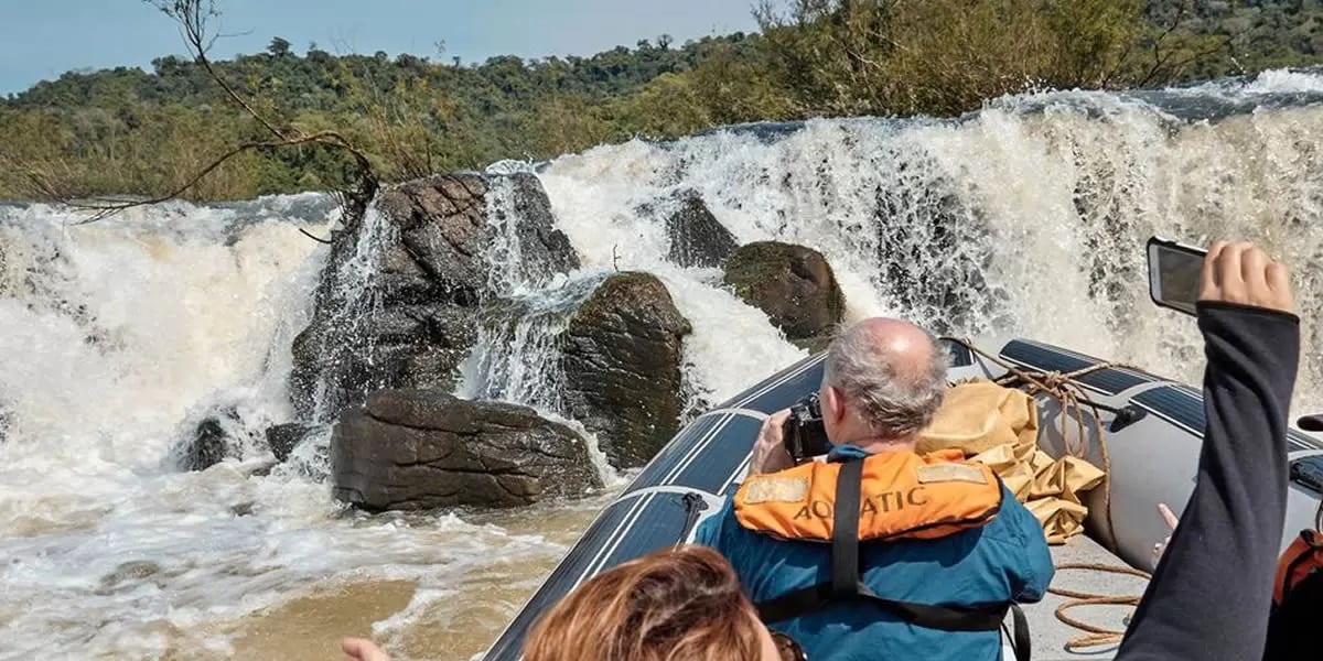 Ya en el embarcadero para el paseo náutico, desde el margen del río donde inicia el recorrido, solo se escucha el bramido del agua. Una vez en marcha, la vista es imponente: un cañón de tres kilómetros de largo por donde el agua cae estrepitosamente. El comandante de la embarcación nos acerca a los saltos y se puede sentir la fuerza y la magnitud de estos. El paseo dura unos 20 minutos. Una experiencia única que refleja lo maravilloso de la naturaleza.